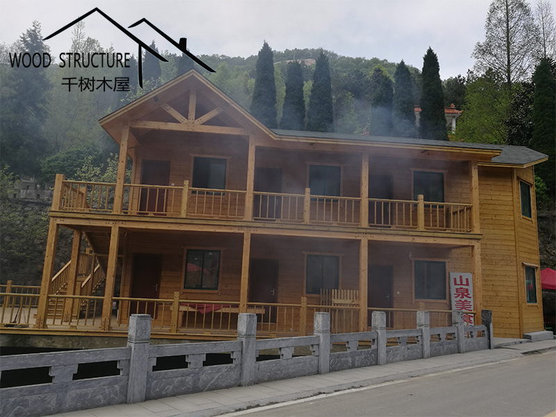 風景名勝區(qū)的復式辦公樓木屋和20個售賣小木屋由河南千樹木業(yè)有限公司(以下簡稱千樹木屋)設計并建造。