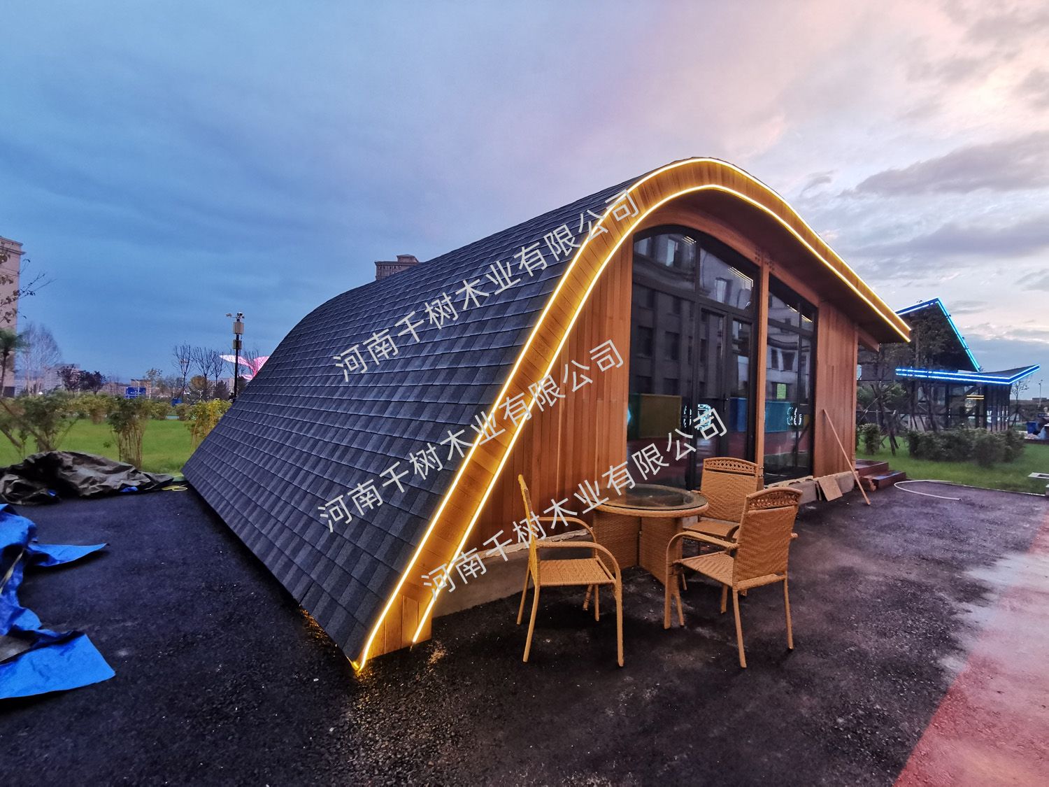 項(xiàng)目介紹:木屋定制。采用紅雪松無節(jié)外飾面