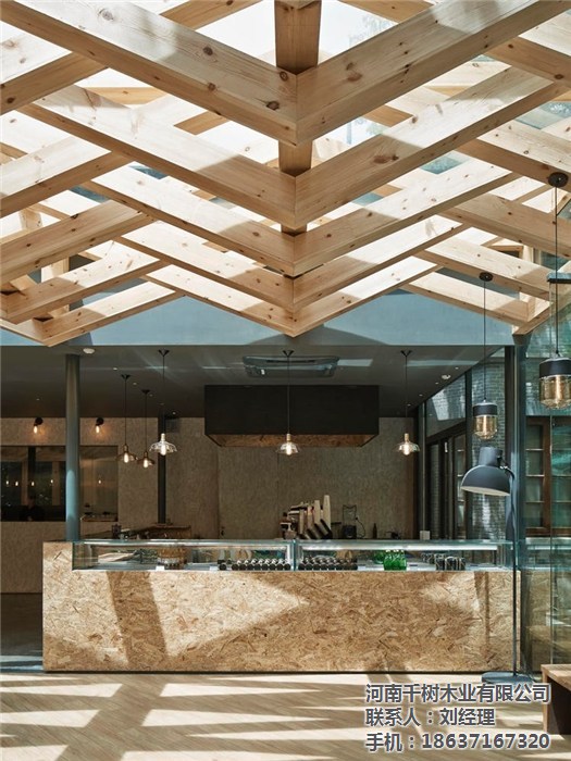 值得一說的是建筑玻璃屋頂的雙層方管結構,設計團隊在這一結構本身的基礎上,加入了溫暖的原木色木梁,并按照編織紋理的式樣加以組織,看上去頗為有趣。