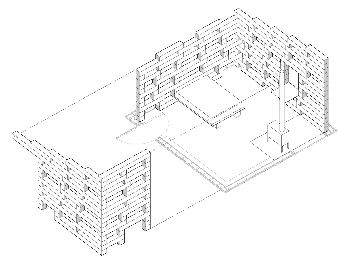 單間式的體塊內(nèi)僅僅夠容納一張床、一張扶手椅和一張小桌子。全年都能使用的燒木頭的爐子,給這個空間提供熱量。