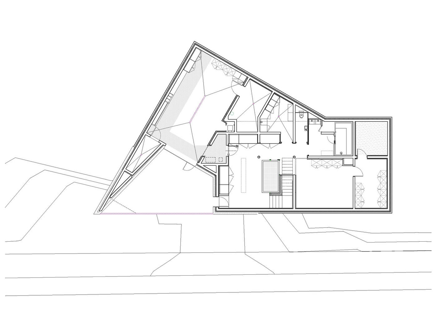 應(yīng)老客戶的要求,建筑師在夏蒙尼山谷設(shè)計(jì)了一座新的小屋,并監(jiān)督了它的建造過程。 其場地位于50年代建成的住宅區(qū)內(nèi)。從場地原始的總體規(guī)劃中可以看出這里以前也是一座小屋。