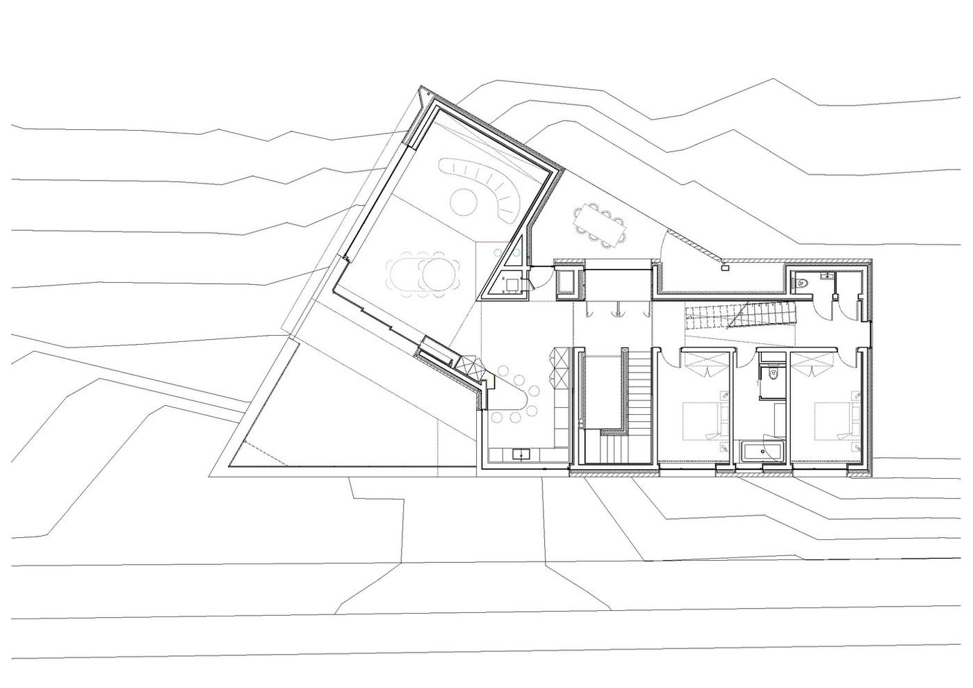 這個(gè)項(xiàng)目建在自然環(huán)境之中,石頭基地的頂部為一個(gè)小木屋。 基地設(shè)有技術(shù)功能房和一個(gè)車庫。這個(gè)項(xiàng)目的完成時(shí)間只有短短9個(gè)月。