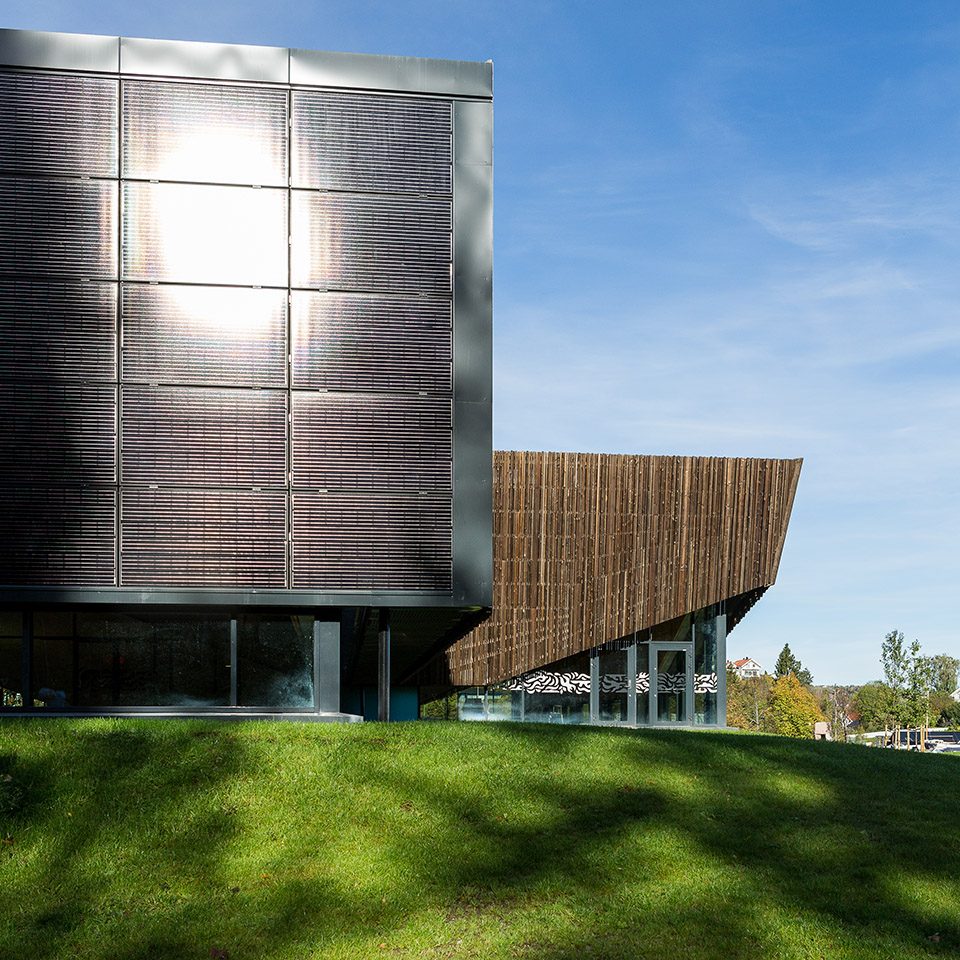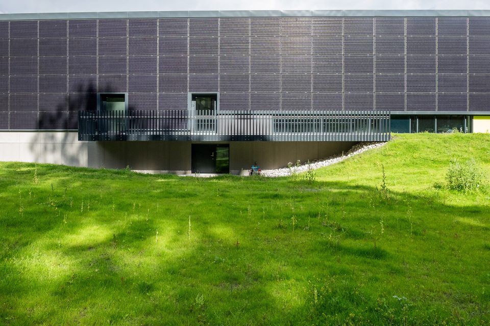 被動式的設(shè)計使建筑在能源利用方面變得更加高效,具體體現(xiàn)在建造方法、隔熱層和建筑形式上。除此之外,設(shè)計還強調(diào)了能源的再利用,其中以熱水供暖最為突出。650平方米的太陽能板和場地中的15個地?zé)峋餐瑢碜曰鶐r的熱能輸送給建筑,在夏季還能將多余的熱量傳遞到地表下方。