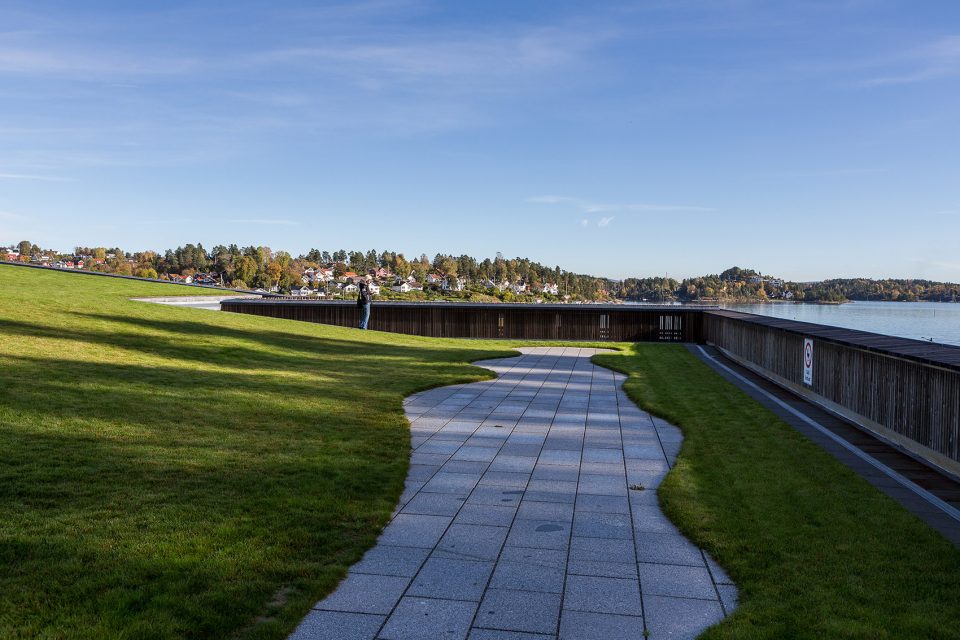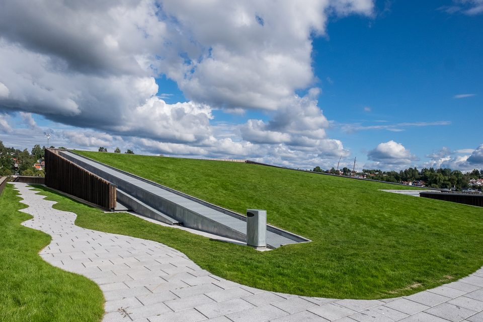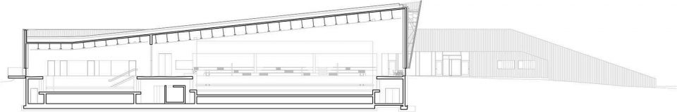 Holmen水上運動中心位于Holmen海灘,這里經(jīng)過填海造陸,保護(hù)和鞏固了場地的自然屬性。整個場地被花園覆蓋,為海灘帶來非凡的美景。該項目旨在活化建筑的屋頂,使之成為海灘休閑區(qū)域的一部分。鋪滿植被的屋頂向南面傾斜,在Oslo fjord的群島和礁石之上形成連續(xù)不斷的景觀。主入口、接待處、更衣室和游泳池皆位于建筑的主樓層,凌駕于向建筑方向傾斜的草坪之上。低處的樓層則容納了體育館、多功能廳、設(shè)備間以及辦公設(shè)施等。