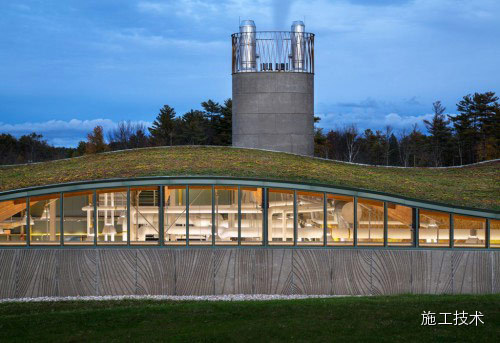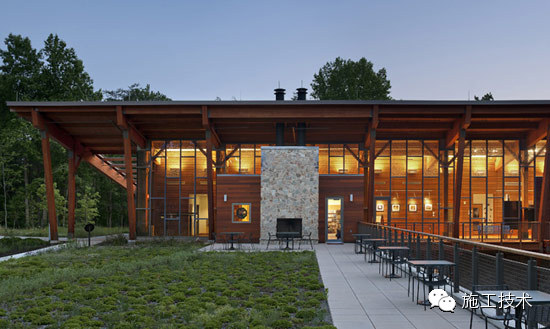 這個(gè)總面積達(dá)16500平方英尺的建筑屋頂由植被覆蓋而成,與周圍植物的顏色一致,有利于建筑物與自然風(fēng)光相互協(xié)調(diào)。從某些角度,建筑幾乎消失于人們的視野 之中。當(dāng)?shù)刎S富的可再生建筑材料在整個(gè)建筑框架、桁架、欄桿、單板和木材復(fù)合板中都得到了充分應(yīng)用。欄桿是在當(dāng)?shù)厥崭?、研磨、烘干后進(jìn)行再裝配的。