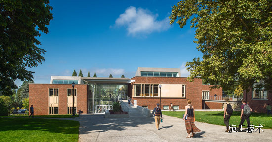波特蘭里德學(xué)院表演藝術(shù)大樓建筑特色:里面有一個(gè)200座的劇院和靈活的座位配置,一個(gè)100座的非正式的黑盒劇場(chǎng),100座的合唱排練廳和100座劇院性 能實(shí)驗(yàn)室。教學(xué)和排練空間包括:多媒體實(shí)驗(yàn)室和資源庫(kù)、兩大彩排舞蹈的劇院、服裝設(shè)計(jì)工作室,共享的教室和教師辦公室。