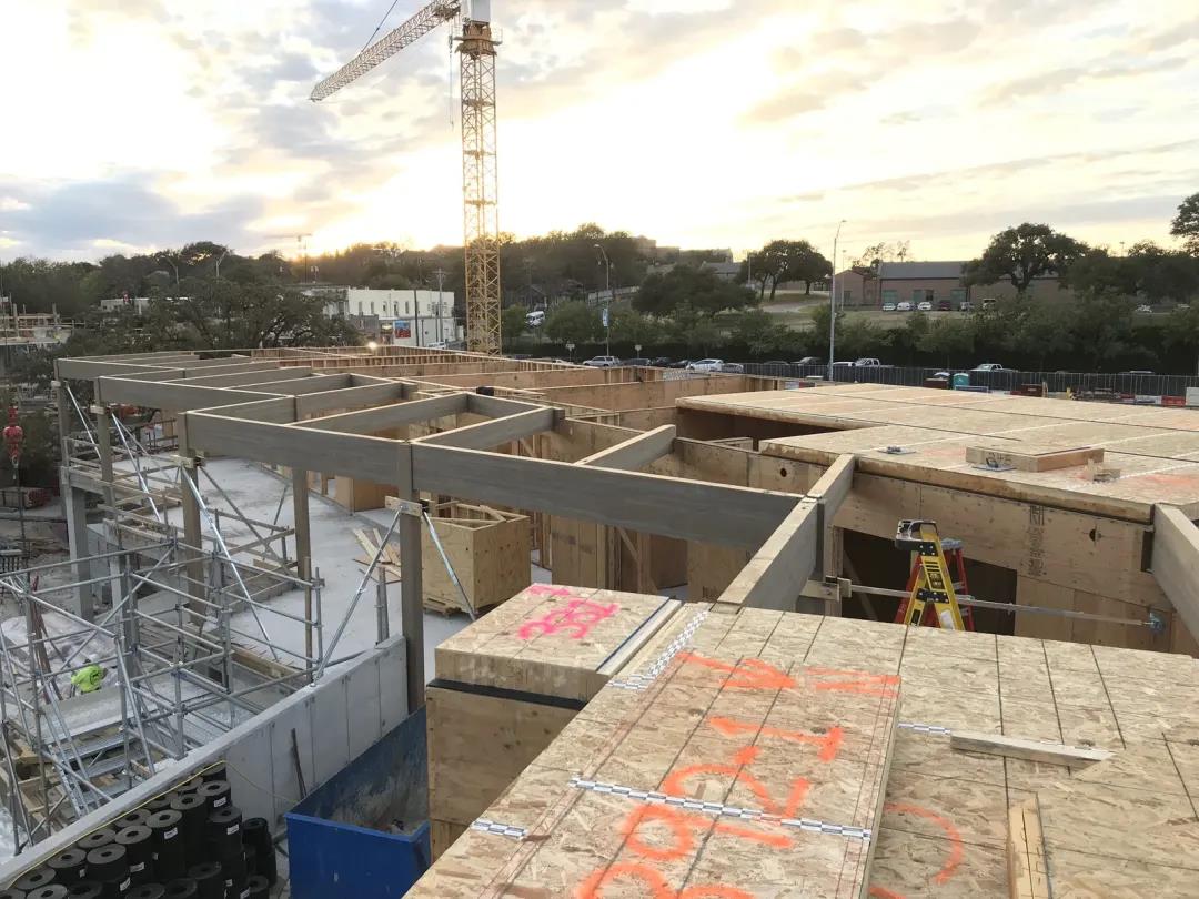聲學設計也是早期設計階段的一個關鍵考慮因素。為了滿足 STC/IIC 等級,在 DLT 面板上放置了隔音墊以及鋪設了3 英寸的混凝土層。為了打造良好的居住環(huán)境,設計團隊為了減少側翼噪音,在立柱墻內安裝了隔音條。