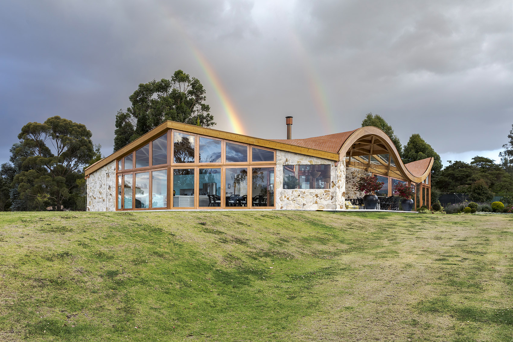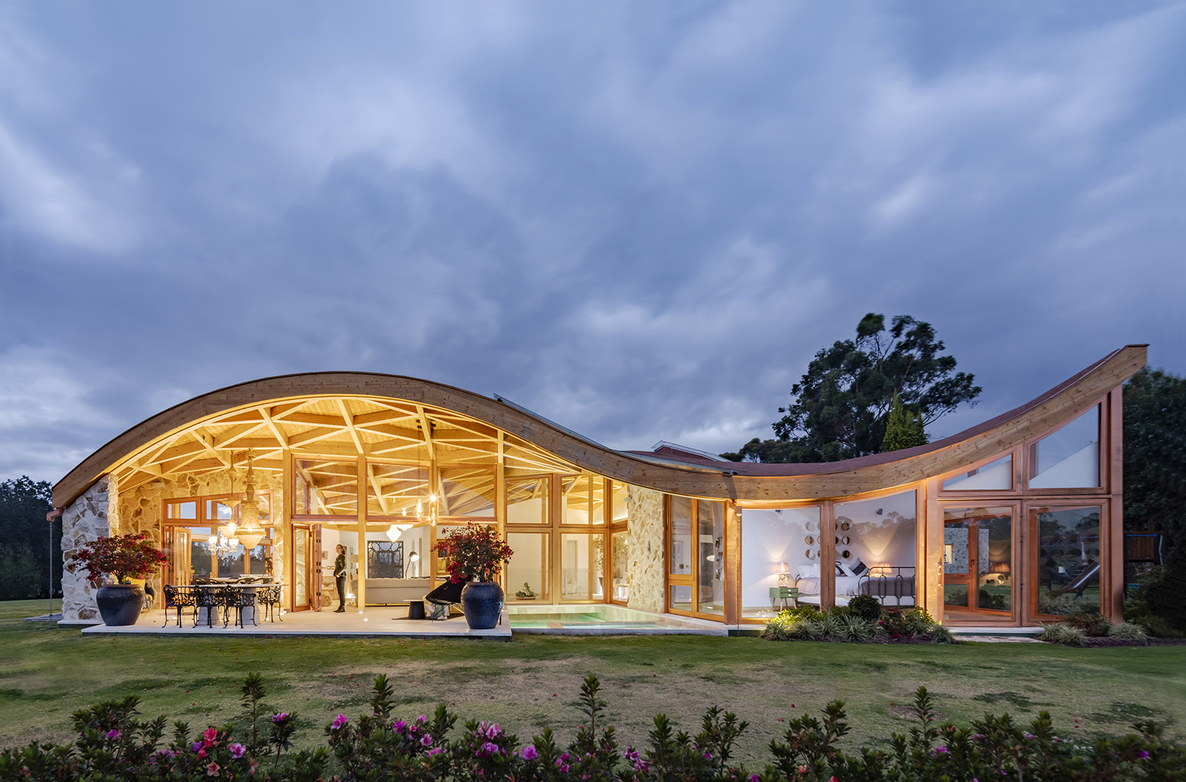 在形式和材料方面,設(shè)計追溯了莊園住宅的根源,以當(dāng)代的建造手法重新詮釋了木材、石材以及粘土等材料,為住宅賦予了輕盈通透的外觀。在概念上,建筑師將住宅構(gòu)想為一道“連續(xù)的波浪”,輕柔地覆蓋并保護著下方的功能空間。