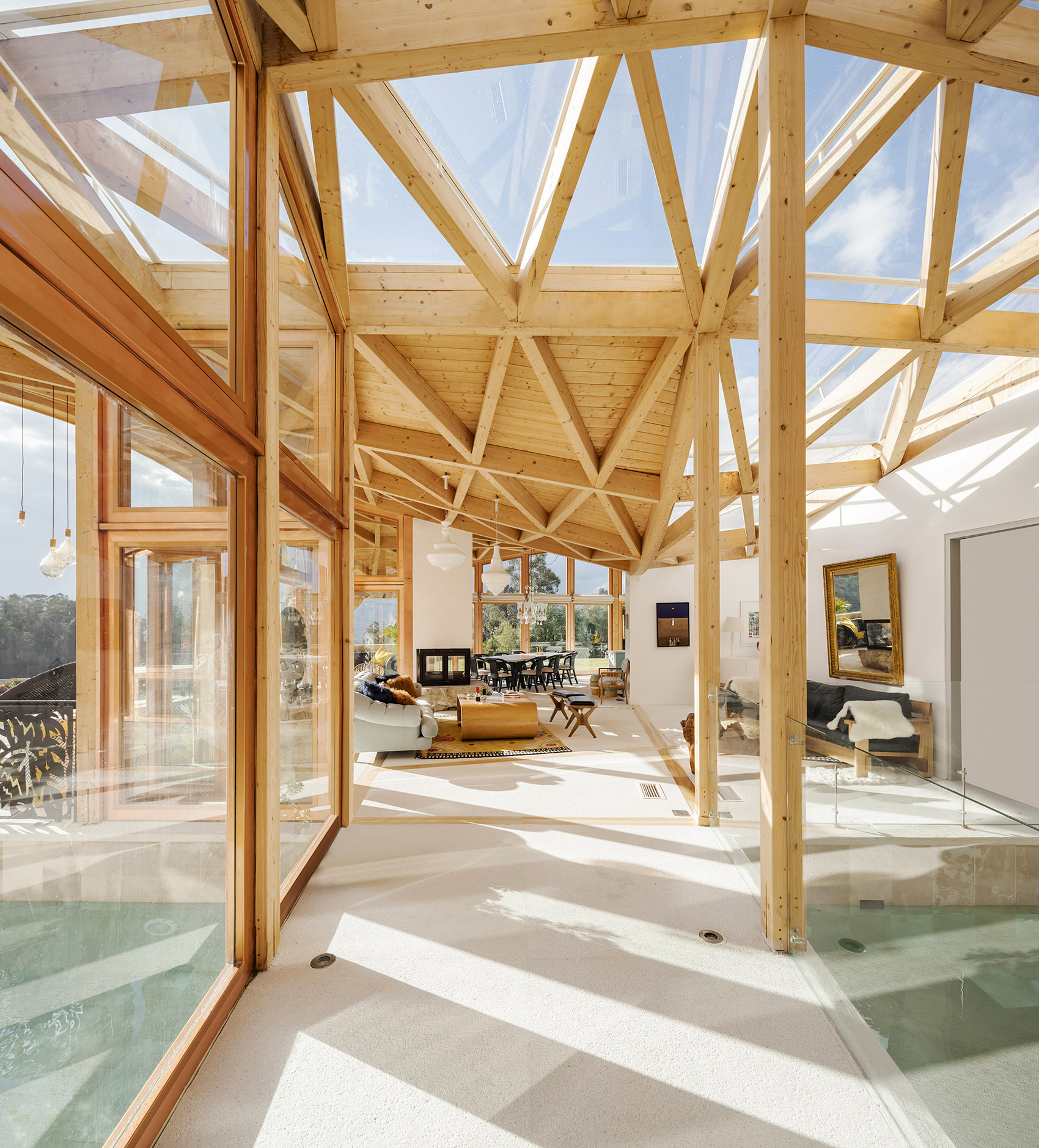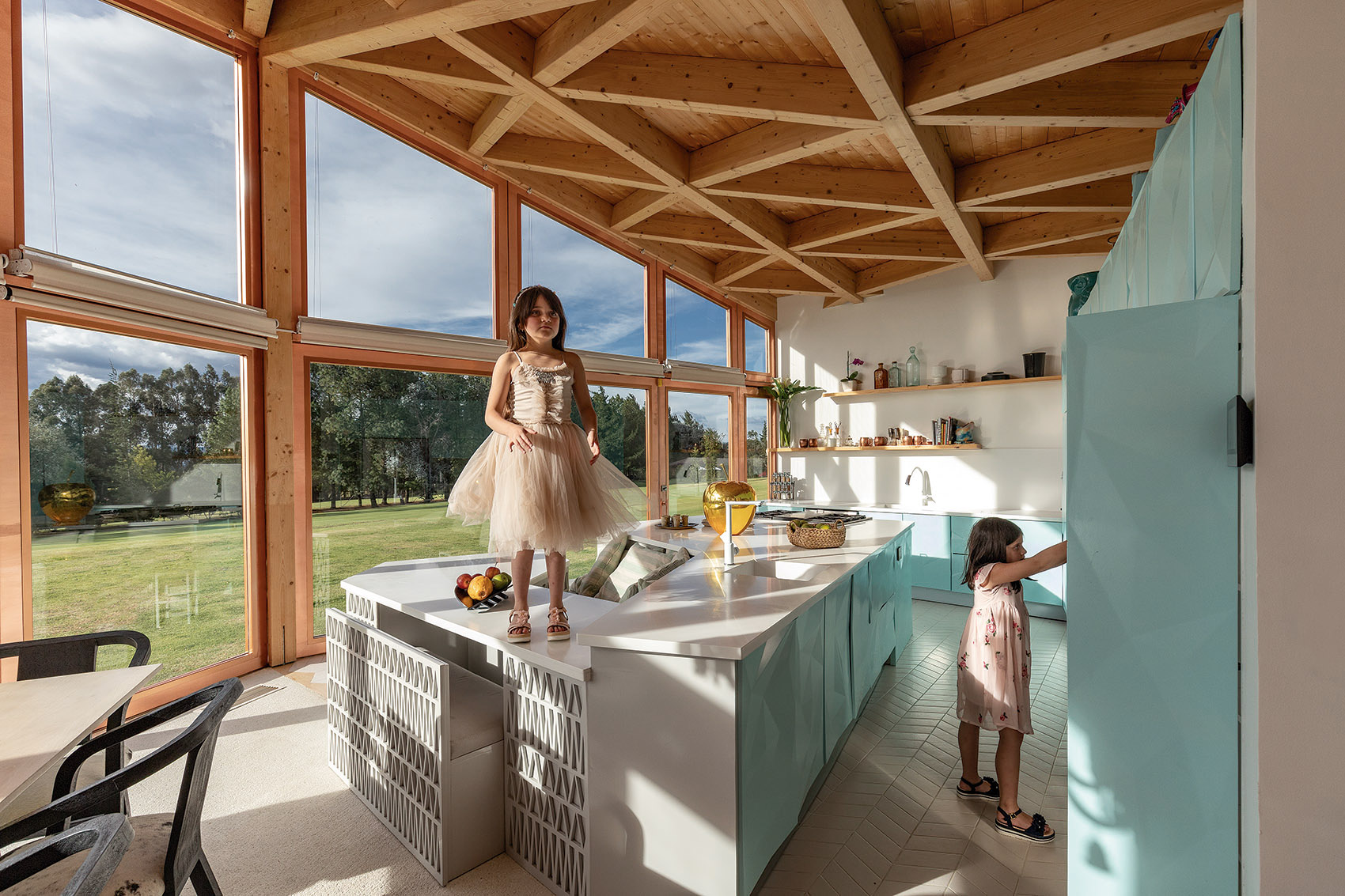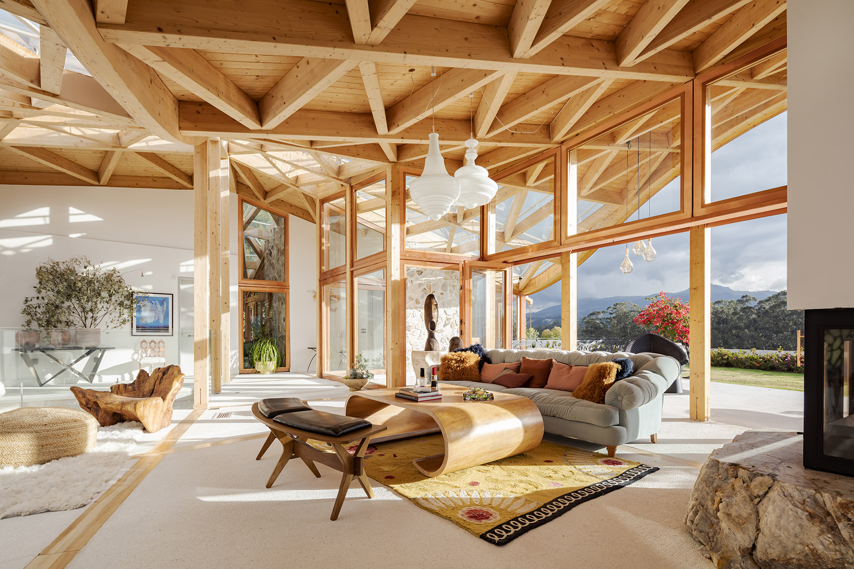 落成后的住宅呈現(xiàn)出石材與玻璃的微妙平衡,充滿活力與溫暖的木結(jié)構(gòu)外觀則將建筑與環(huán)境融為一體。室內(nèi)設(shè)計遵循了最初的概念,以精致的材料與現(xiàn)代化的設(shè)計,平衡并激活了建筑空間。從利用先進的制造工藝處理木材,再到結(jié)合本地和國際建造經(jīng)驗,本項目向大眾展示出本地工業(yè)的巨大潛力。這是厄瓜多爾首次實現(xiàn)該類型的建筑,并達到如此細致的水平。將數(shù)字技術(shù)與當(dāng)?shù)氐氖止趧蛹夹g(shù)相結(jié)合,不僅創(chuàng)造出獨特的建筑形式,同時也有助于提升該國建造業(yè)的潛力與可能性。